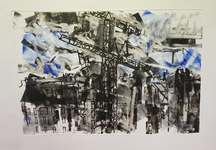 I have over the years ‘fallen in and out of love’ with the intaglio process. Living in Scotland for a number of years I developed an interest in landscape and too some degree the urban landscape. This influenced my printmaking in particular Etching/Aquatint. I feel I’m responding to many of these influences again but in a different way.